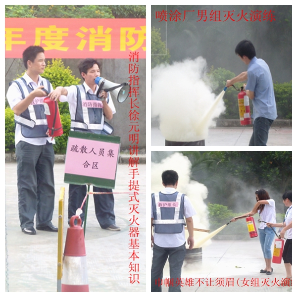 為了認真落實消防“四個能力”建設(shè),檢驗我司火災(zāi)事故的防范措施能力,進一步增強全員消防安全意識,******限度地減少因火災(zāi)事故而造成的損失,公司消防辦于6月21日下午在公司籃球場舉行了消防演習。在集團晏總的指揮下,由消防辦策劃、噴涂廠參加,各單位主管協(xié)助參演的消防疏散演習如期舉行。